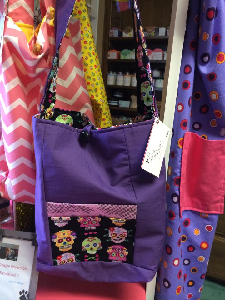 Hi everyone! I have never had an online blog before so I figured this would be a good way to boost my side business. I hope you all enjoy it! A little bit about me! My name is Julie, I live in Norfolk with my boyfriend and my dog, Lilly. I graduated from Old Dominion University in 2008 with a degree in fashion and merchandising, and now I work full time as a legal assistant and spend a lot of my free time focusing on my sewing. My business started out with my handmade jewelry, but then I wanted to expand and make handbags. I started sewing and making handmade bags in 2009, a little bit after I graduated college. After making several handbags I decided to expand again and make other products such as credit card holders, doggie bandanas, and aprons. I have sold my products in local craft shows and now I share a space with a friend in 3 Little Black Birds which is a local crafter store located in Chesapeake, Virginia. My friend Jen makes coffee cup sleeves, produce bags, and tiki torches. After a year in being in the crafter store, we decided to combine both of our businesses into one called “Blu Js’ Designs.”