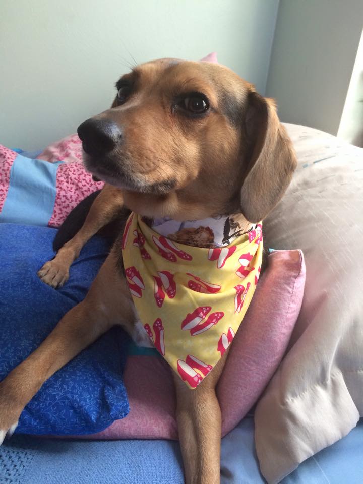 A couple weeks ago I have made several reversible scarves for dogs that are currently selling at “3 Little Black Birds.” In case you haven’t noticed already that I am an animal lover and an owner to one beagle/weiner mix. I love dolling her up in pretty scarves, and I love making dog scarves for other people’s dogs. I make the doggie scarves in all sizes, colors, and patterns.