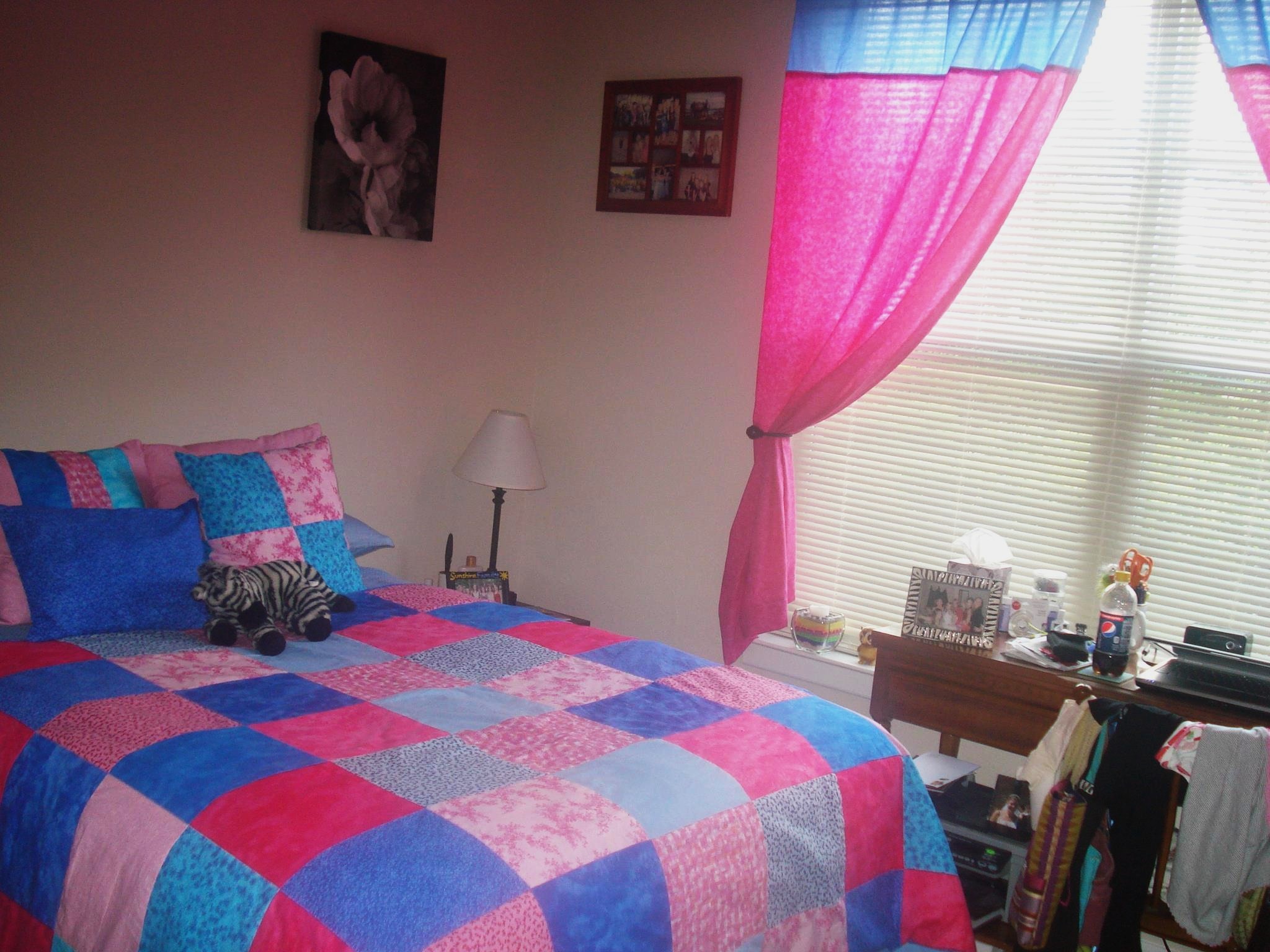 A few years ago I made my own bedroom set, which included a pink and blue quilt with matching pillows and curtains! I loved how the colors turned out and how everything matched so perfectly in my bedroom. The quilt took some time, but the pillows and curtains were pretty simple. I plan on to continue to make more quilts and decor for my home, and fabulous clothes to wear!