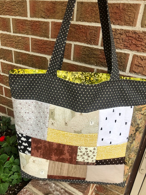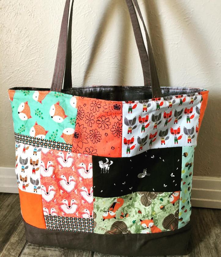 Two more patchwork tote bags I made out of scraps of foxes/bears and wilderness fabric. Both bags are great to use as reusable grocery bags!