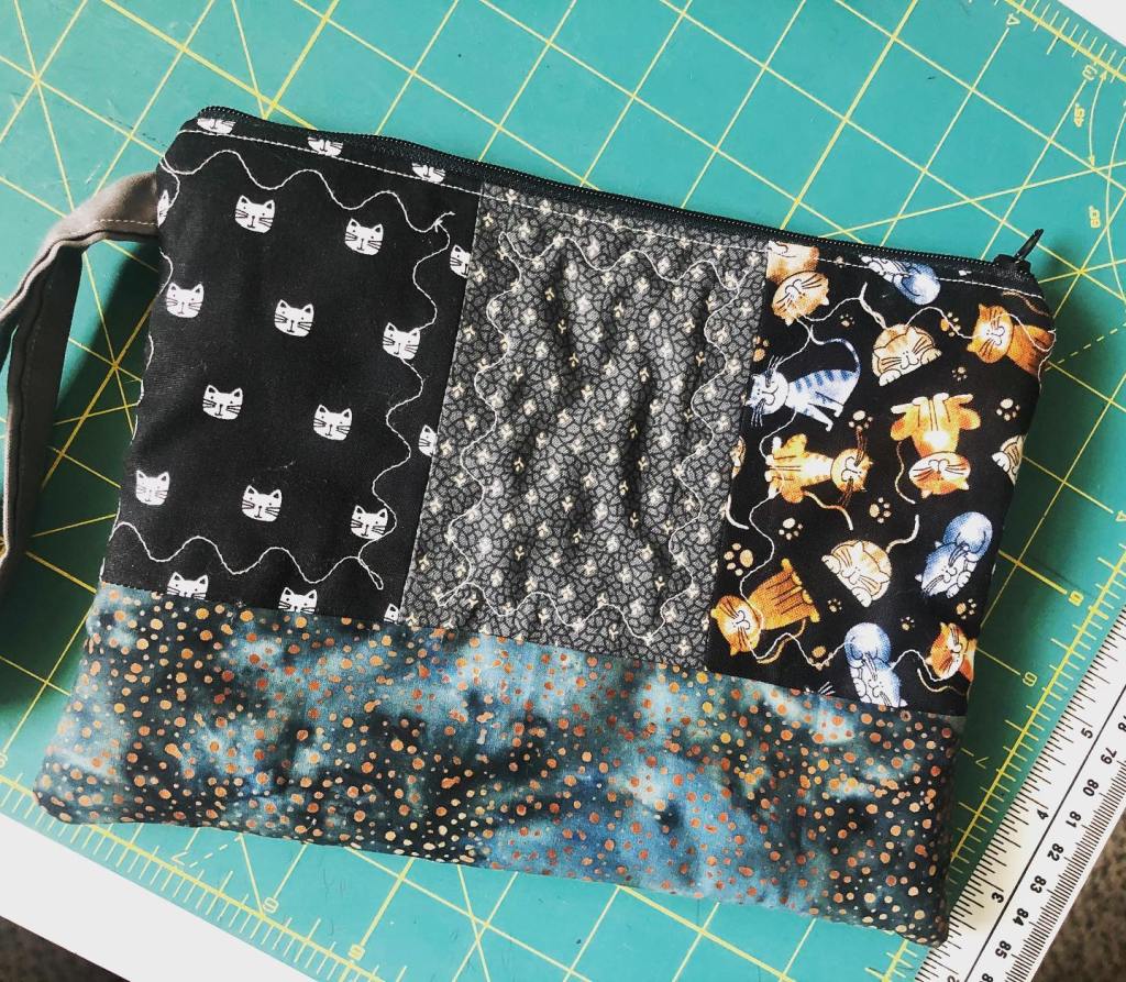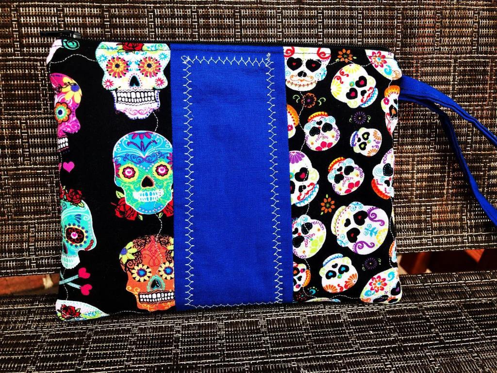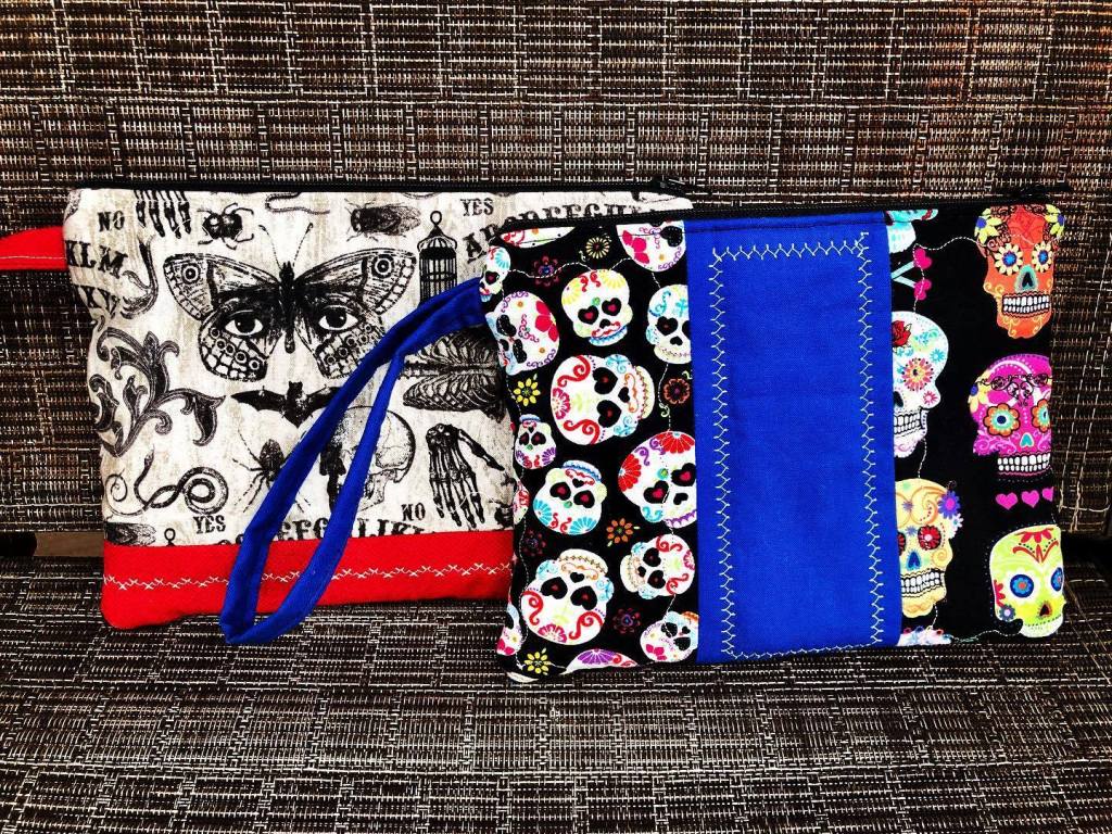 I love these new zipper pouches I made. I am getting into quilting now, so I decided to experiment with the fancy top stitches on my sewing machine. I think these turned out great. Of course you can see a skull/dark colors trend with these pouches 😉