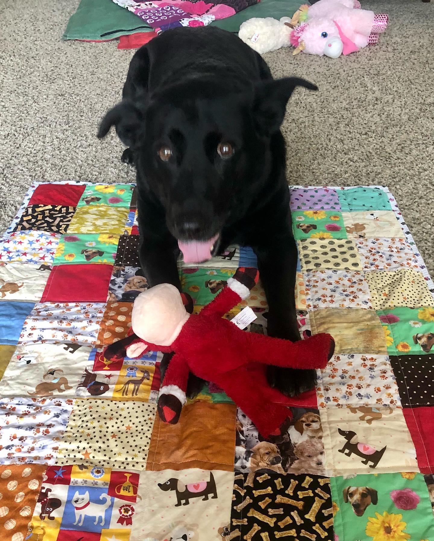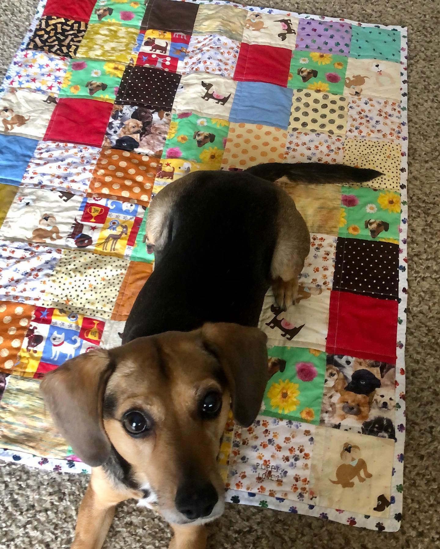 Lilly and her buddy coffee dog enjoyed laying on the quilt! 🙂