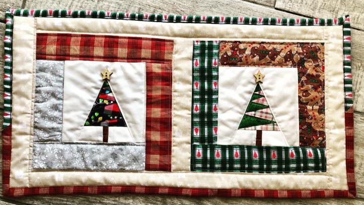 I cannot believe it is almost the end of another roller coaster year. I wanted to share my last two creations of 2021…which are Christmas mini quilts, and are hanging up in my cubicle at work.
