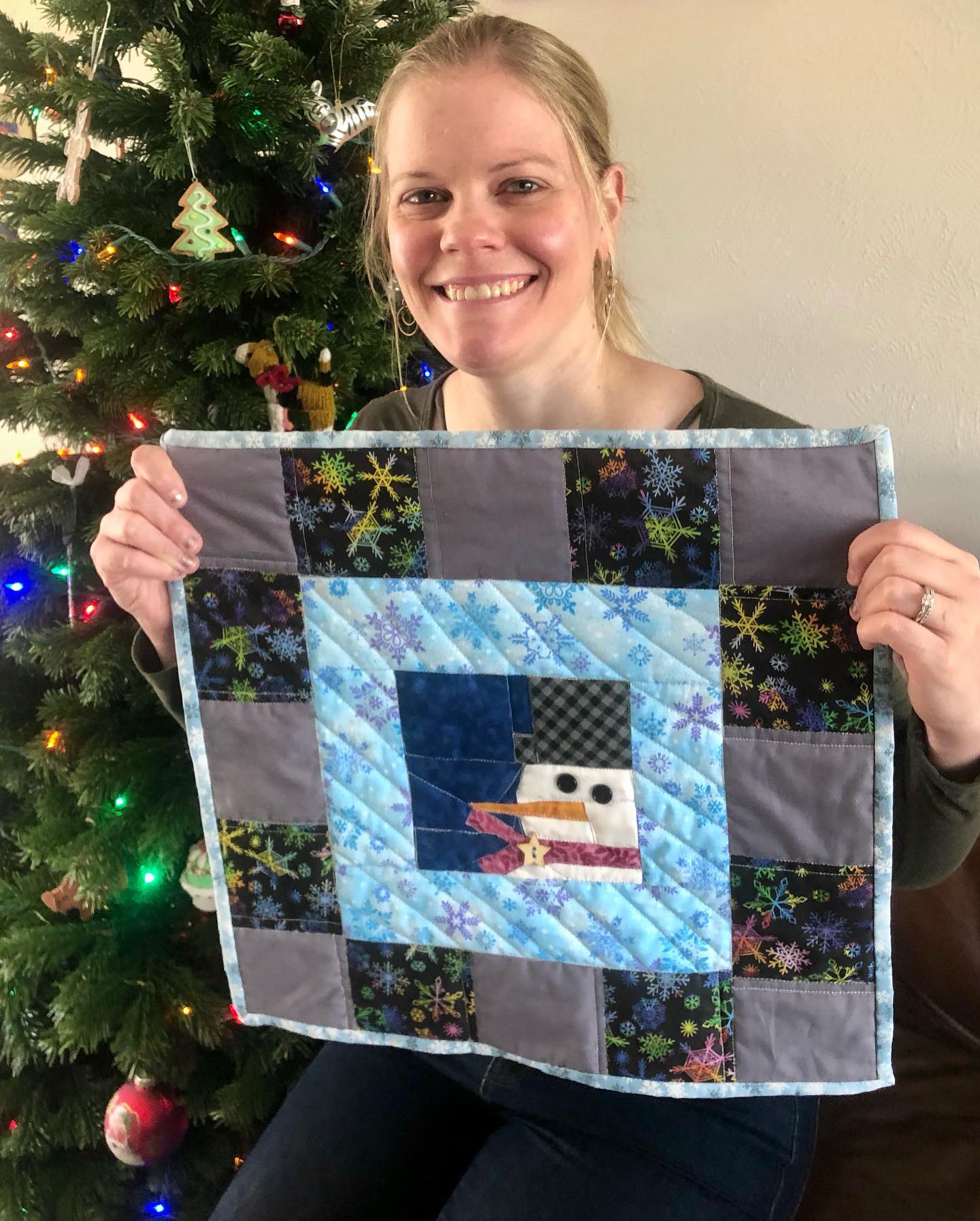 The snowman and Christmas Trees were made from paper piecing patterns credited by Center Street Quilts.