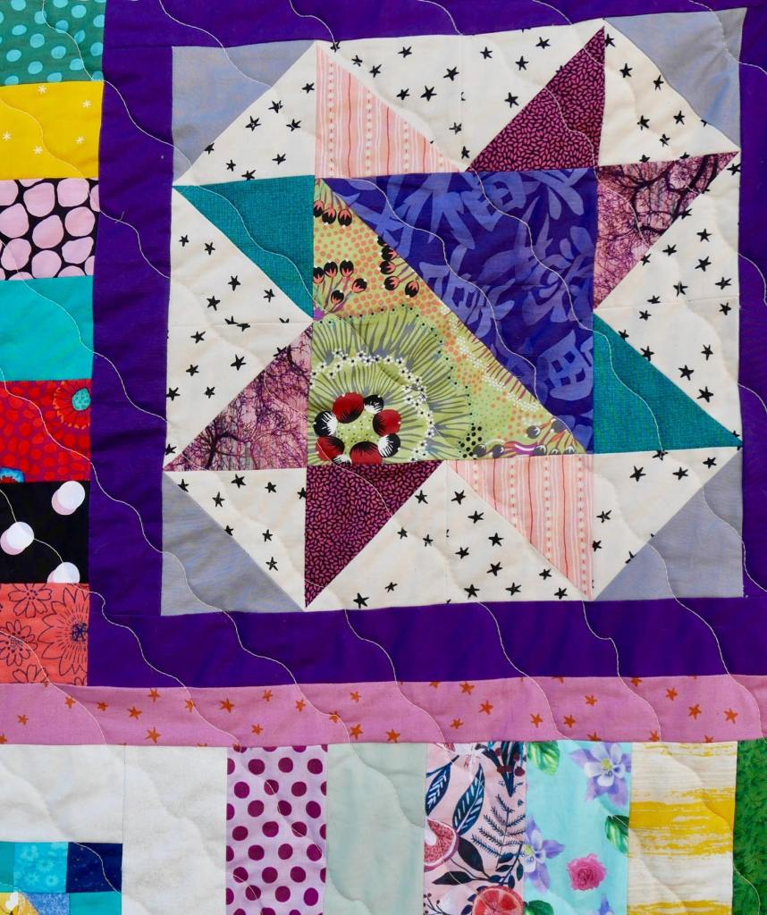 The heart in the middle of the quilt was made from a paper piecing pattern called “Rise of Freedom.” I bought this pattern from an Etsy seller/pattern designer from Ukraine. Her paper piecing patterns are adorable. Check out her Esty page at: https://www.etsy.com/shop/SashasQuilts