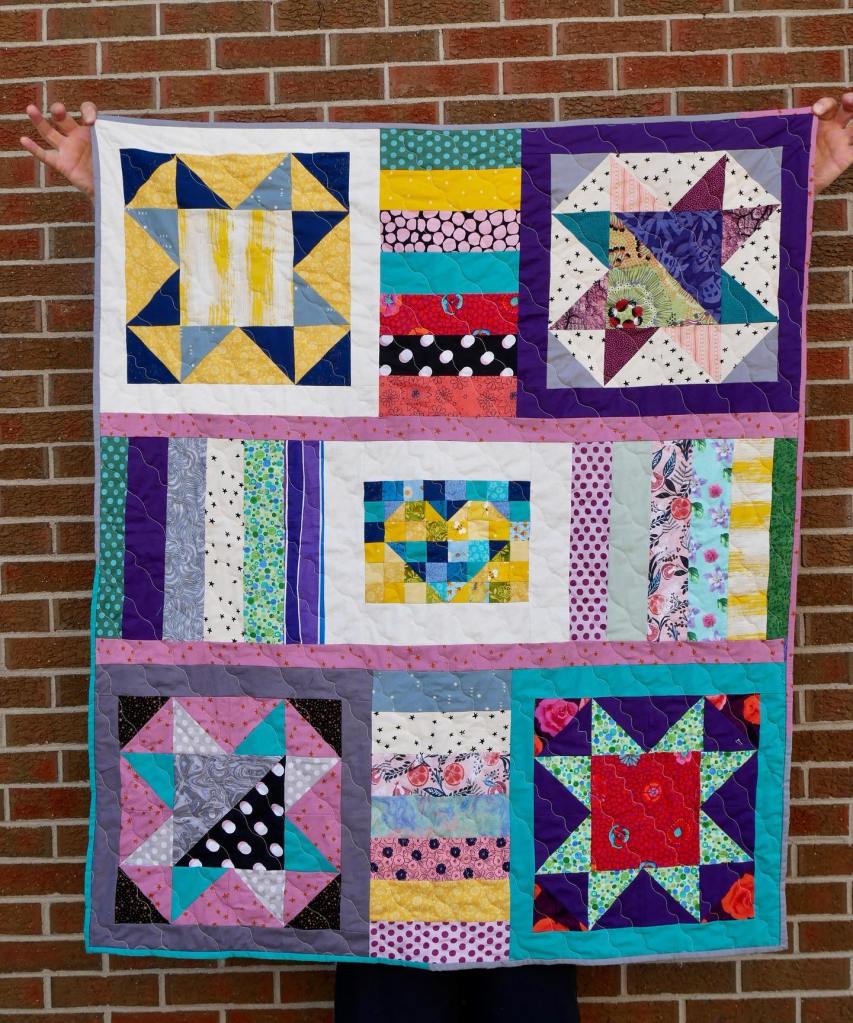 Ever since the war began in Ukraine, I have been feeling sad for everyone who is being affected by this awful war and I’ve been feeling helpless as well. A few months ago, I located an organization in Utah, USA that has been collecting handmade quilts from all over the country to be sent to Ukrainian refugees. So I made this quilt, and sent it off to “Wrap up Ukraine with Quilts” in Utah to be delivered to a Ukrainian Refugee. The quilt is about crib sized, and I love how it turned out. I love the patterns and the colors I used, and of course I had to include the colors of the Ukrainian Flag.