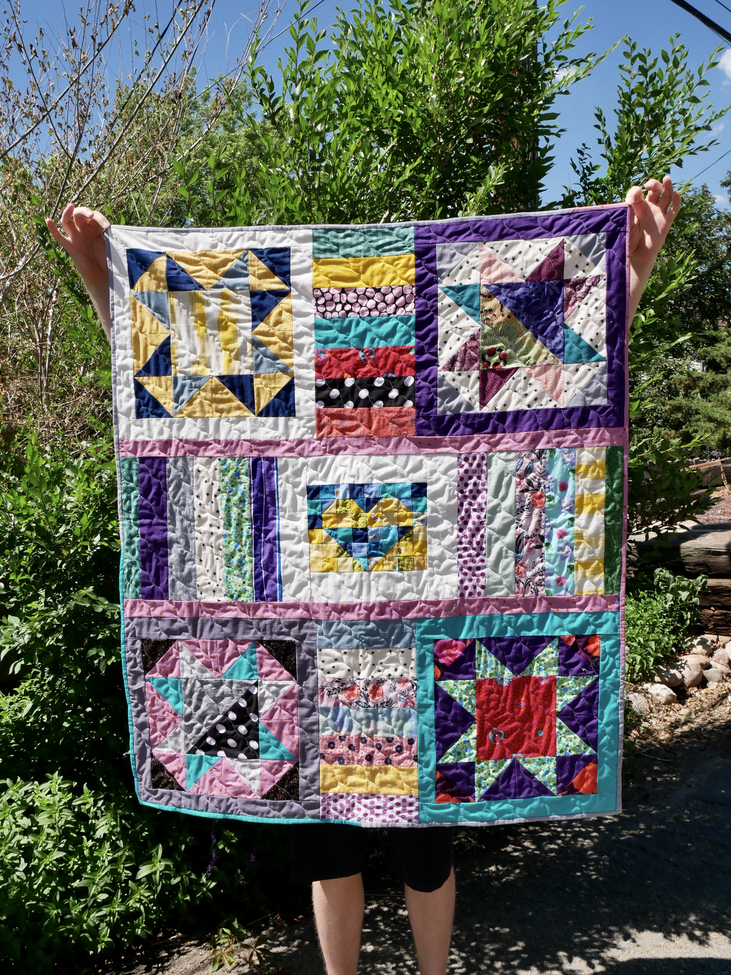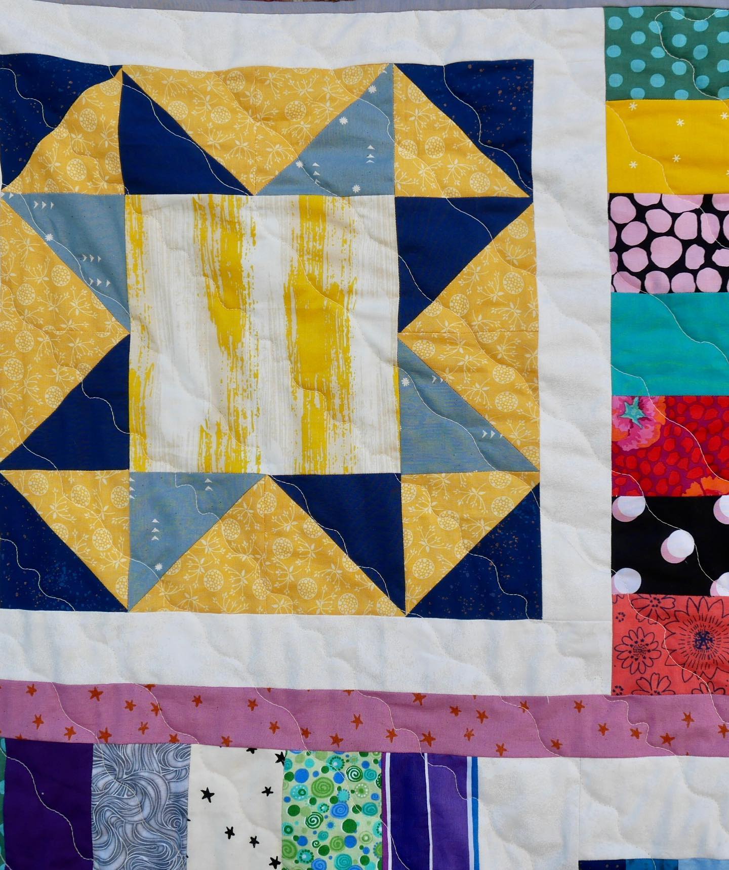 Ever since the war began in Ukraine, I have been feeling sad for everyone who is being affected by this awful war and I’ve been feeling helpless as well. A few months ago, I located an organization in Utah, USA that has been collecting handmade quilts from all over the country to be sent to Ukrainian refugees. So I made this quilt, and sent it off to “Wrap up Ukraine with Quilts” in Utah to be delivered to a Ukrainian Refugee. The quilt is about crib sized, and I love how it turned out. I love the patterns and the colors I used, and of course I had to include the colors of the Ukrainian Flag.