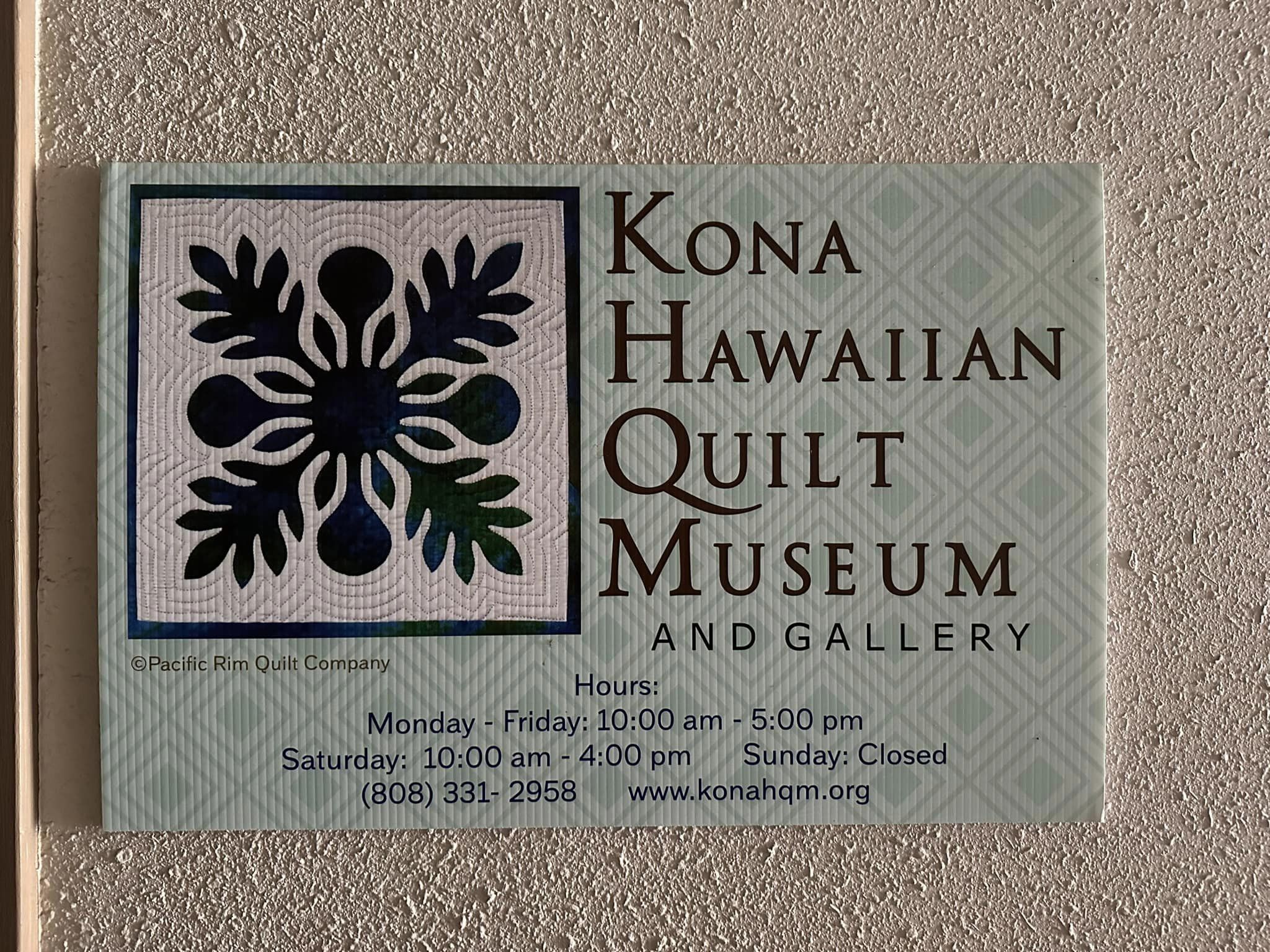 When we were walking along the shopping strip in Kailua-Kona, we came across a quilt shop; “Quilt Passions” and the “Kona Hawaiian Quilt Museum” and of course I had to go into both of these! I saw some beautiful quilts and bought some fabric!