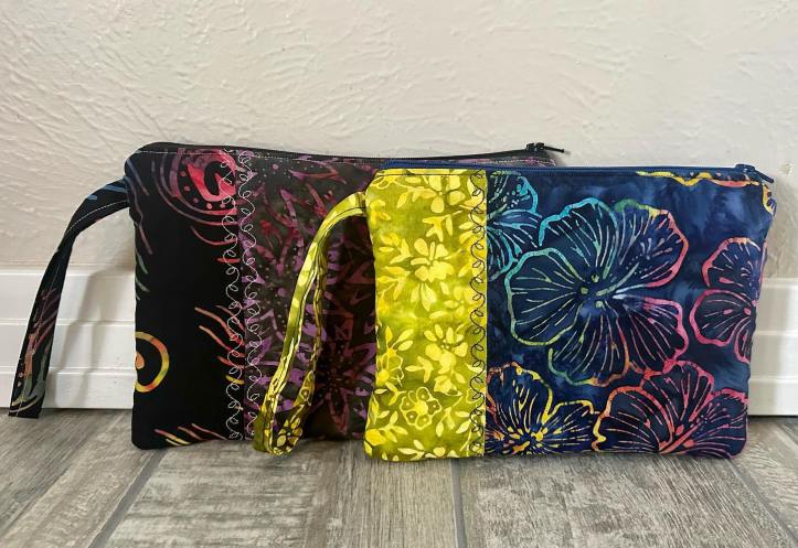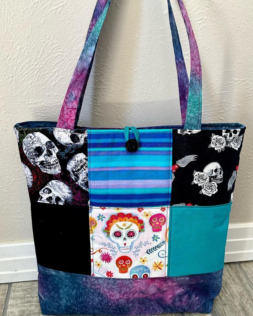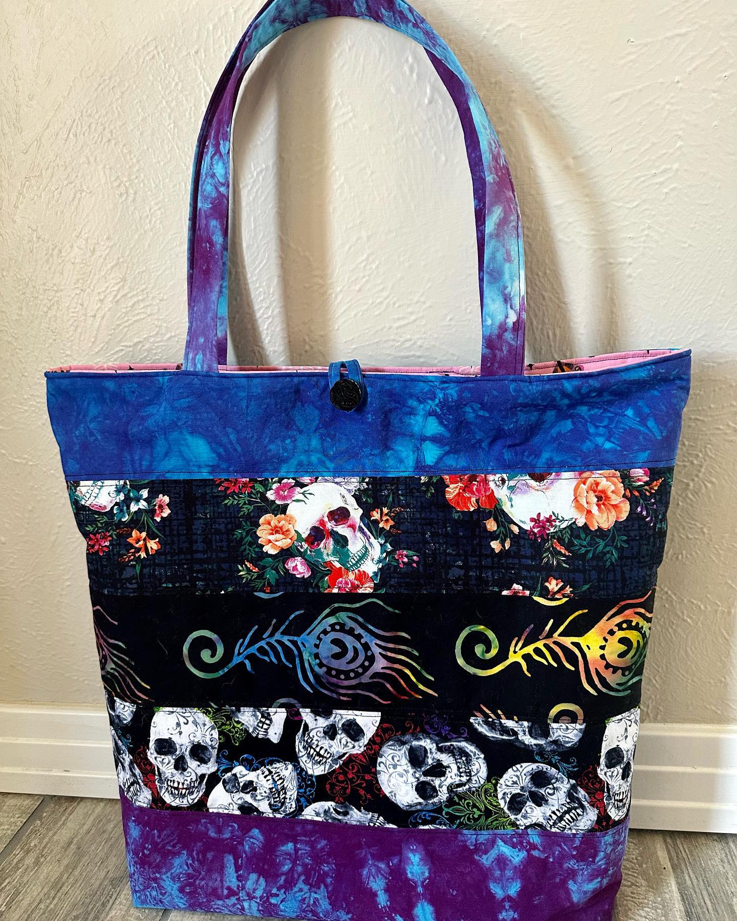 I also combined these fabrics to make this awesome skull/floral quilted tote bag, and whatever Hawaiian fabrics I had leftover were used to make two zipper pouches.