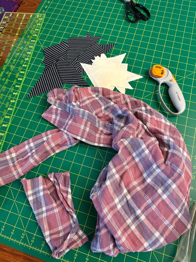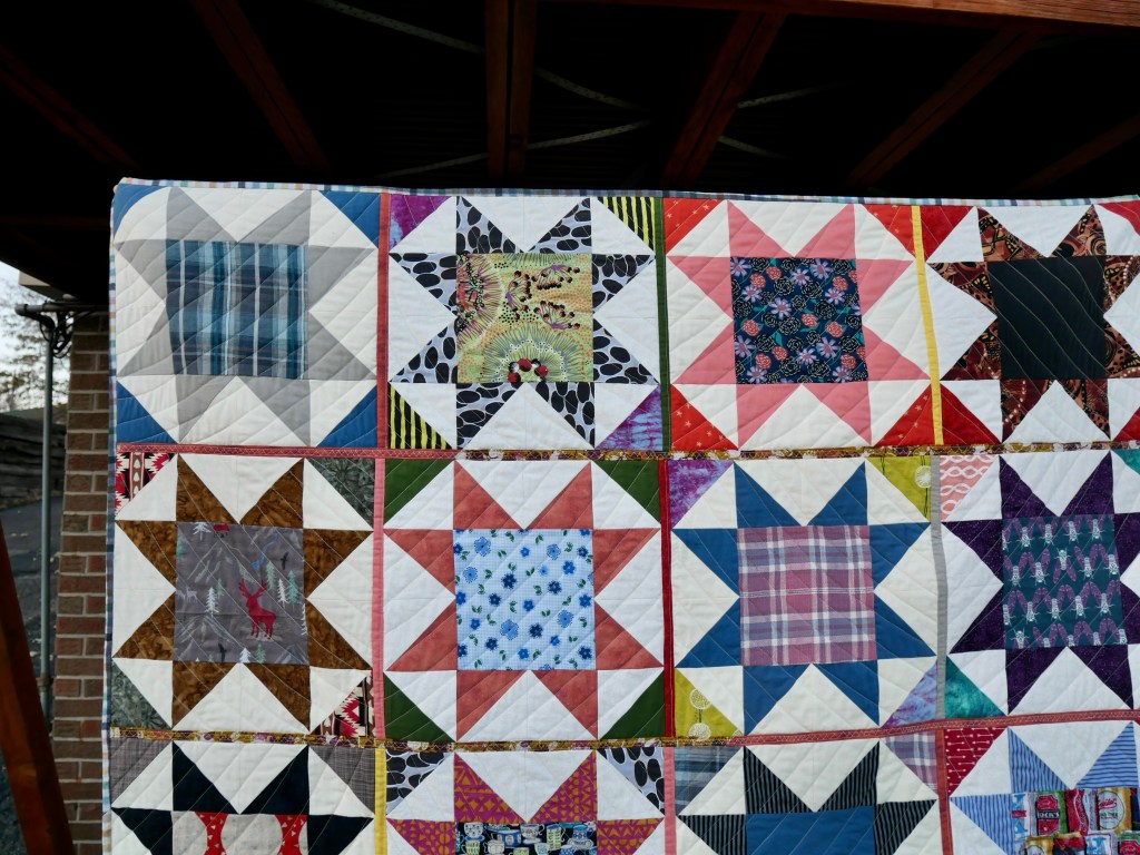 Some of these fabrics are new, but most of them are fabric scraps. I also used some of Walter and I’s old button down shirts. I think all the fabrics collaborate together very well.