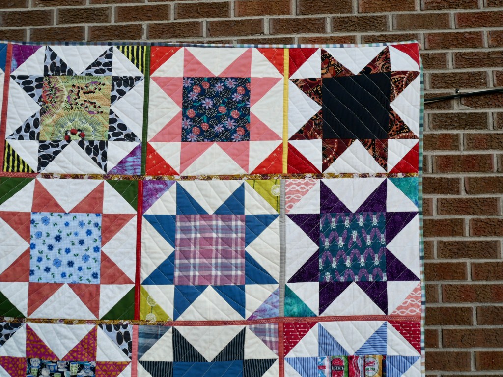 I used “the Quilt as you go” method, where you quilt each block separately and attach them together later on. This method is still a challenge for me, but overall this quilt turned out great, and I think it’s my best quilt yet! It is a lap sized quilt, and it is currently in our living room folded along with our other quilts. š