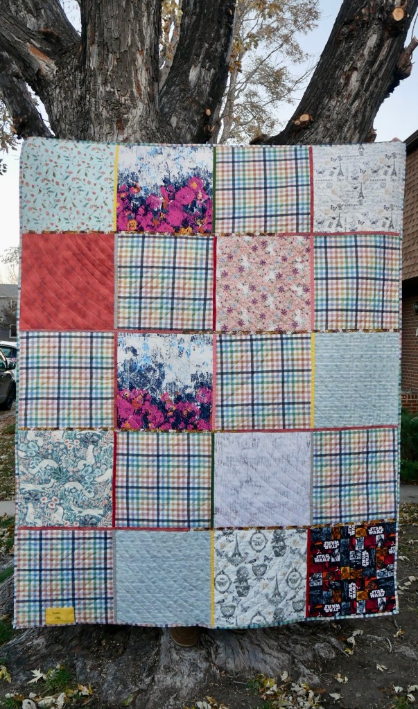 Even the back of the quilt also turned out well, and I thought it would be funny to add a Star Wars fabric at the bottom corner.
