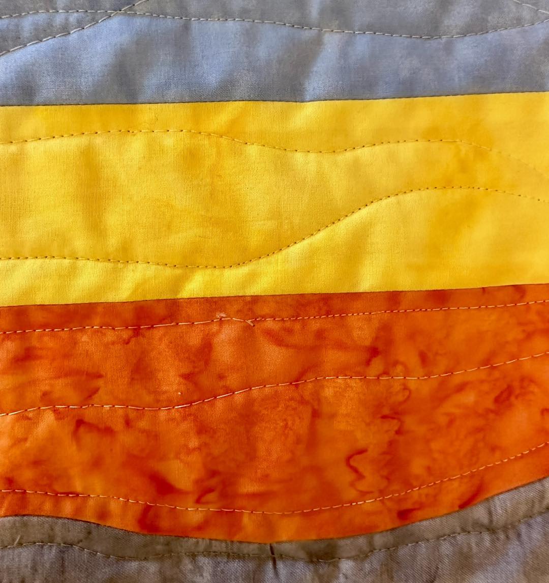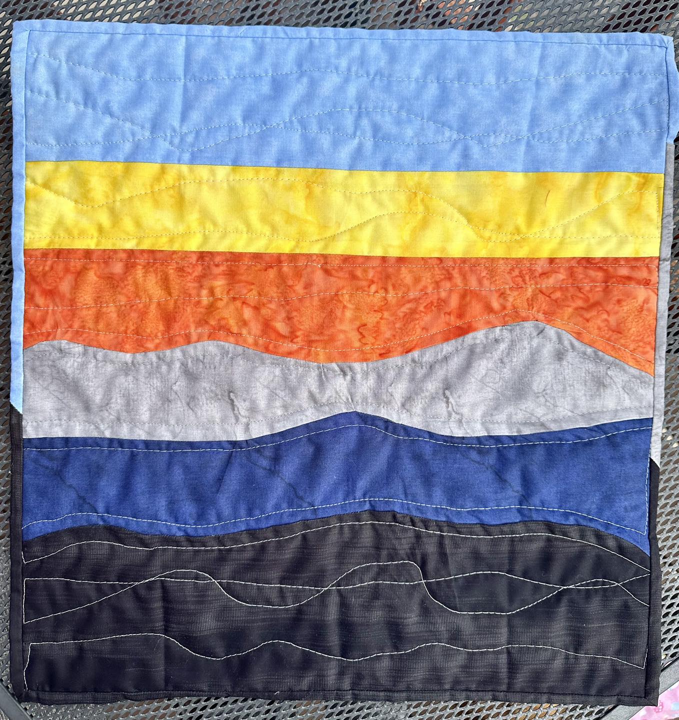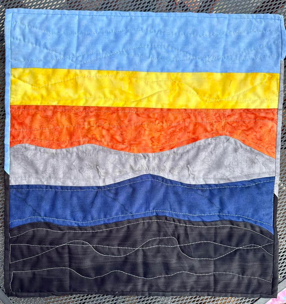 The second quilt below, is another mini quilt I made doing improv quilting. I wanted this quilt to resemble mountains during a sunset. I also practiced free motion quilting on these two quilts. No super fancy stitching yet, I feel I need more practice with free motion quilting on smaller quilts before I start working on the bigger quilts.