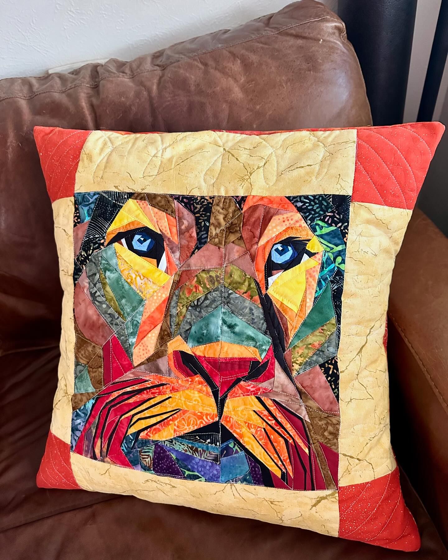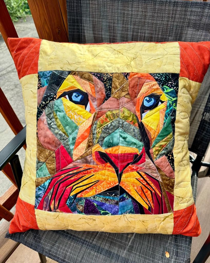 The next project I completed was a large quilted pillow that I made from a Foundation Paper piecing pattern. This FPP pattern turned out to be a lion!