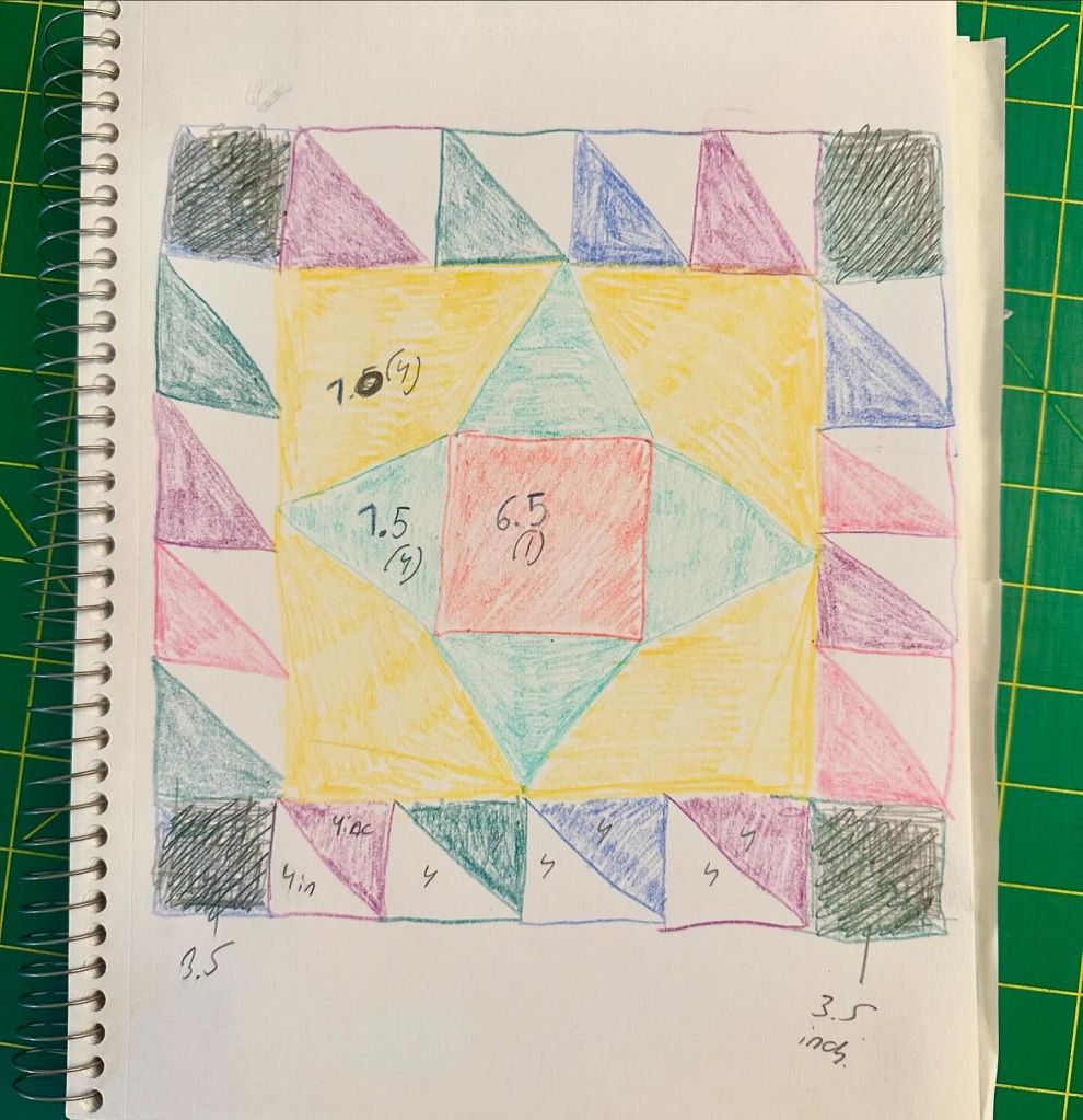 I drew out a pattern I wanted to complete, and each block is about 16×16 inches.