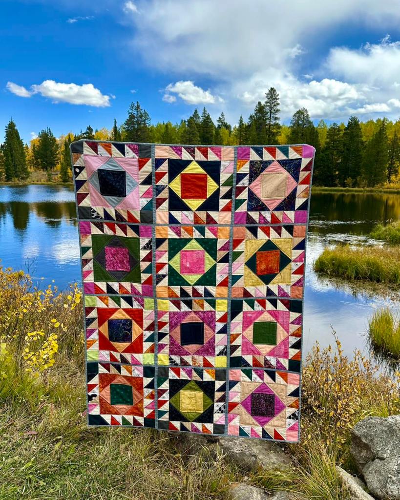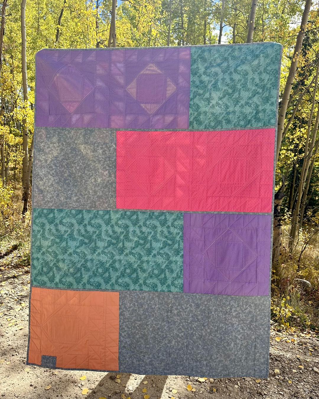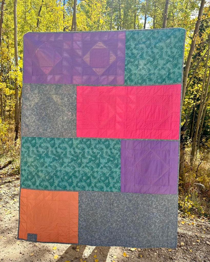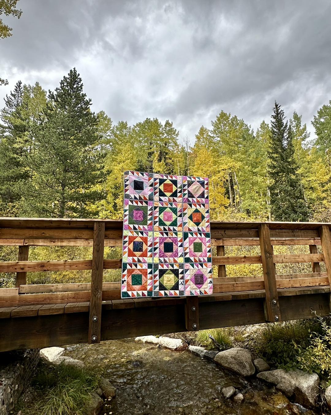 A few weeks ago, we decided to drive up to Leadville, CO to see the peak fall leaves and aspens. We hiked a beautiful trail near Twin Lakes, and I decided to bring my quilt along to do a photoshoot with the fall leaves in the background.