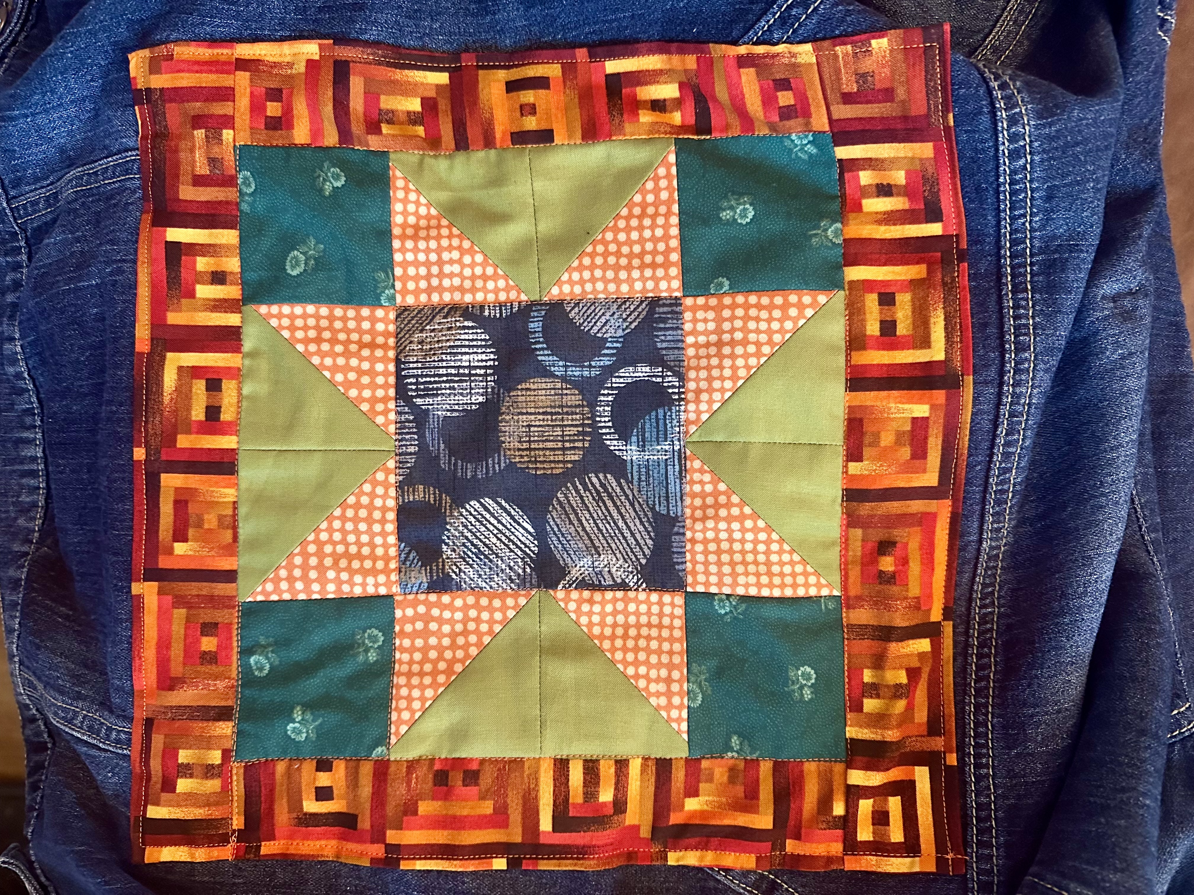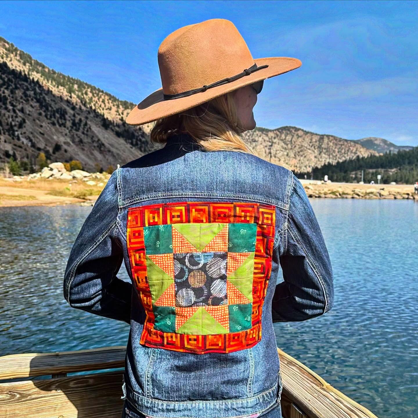This blog post is going to be short and sweet. For awhile, I have been thinking about sewing a quilt patch on a denim jacket…I was seeing them everywhere on social media! So last October, I found a decent quality denim jacket at a local thrift store. I made a Sawtooth quilt patch and sewed it on the back of the jacket. It was super easy!
