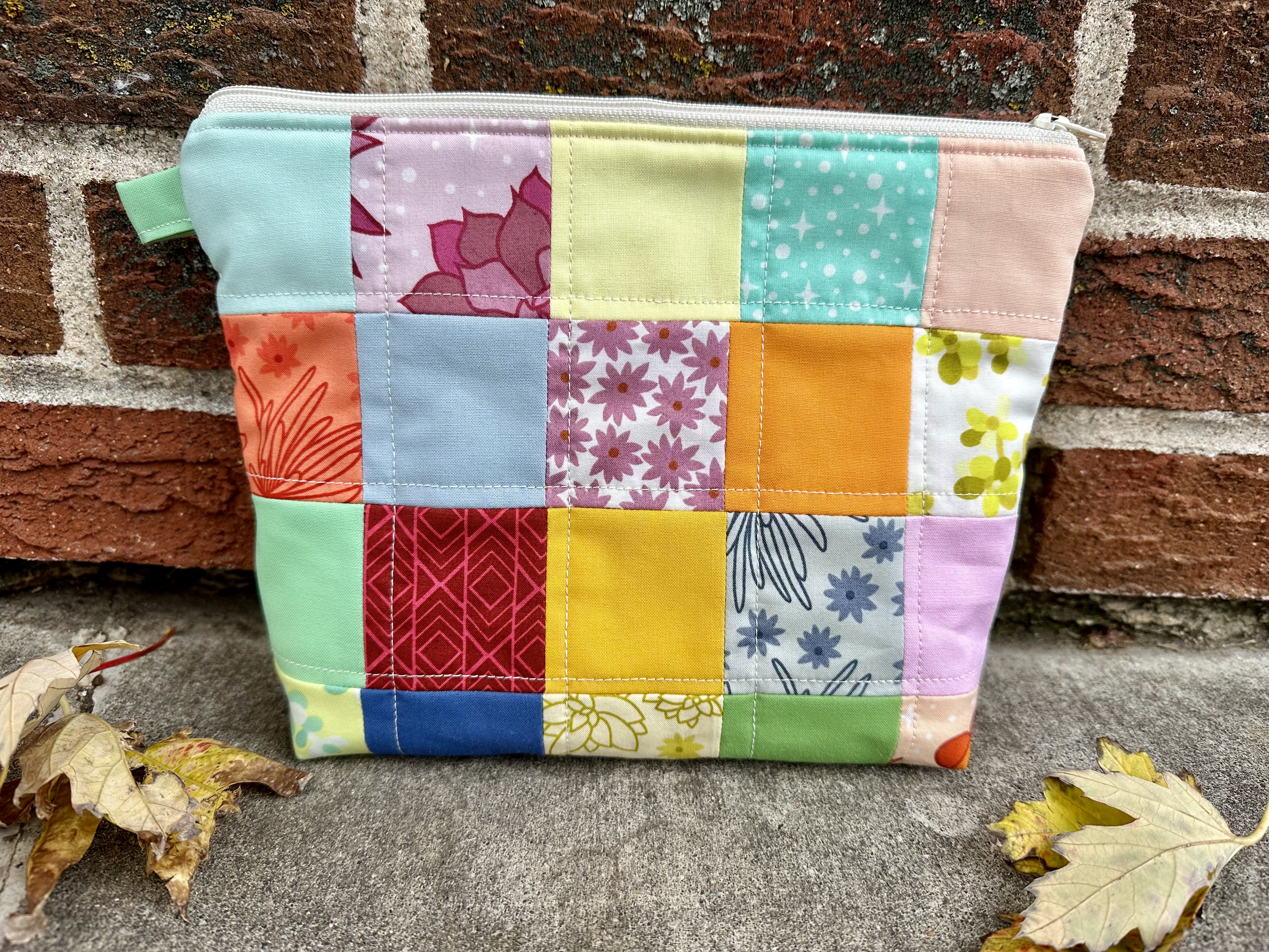 Since I had some jelly roll fabric leftover, I made a few other things including a mini quilt and a zipper pouch.