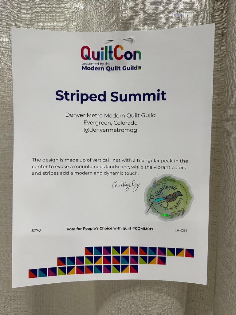 I really enjoyed checking out all the quilts that were on display, including quilts that were made from a few members of the Denver Modern Quilt Guild. I also spotted a few quilters that I follow on social media, and I was very excited to see their award winning quilts up at the front. I included pics of some of my favorite quilts I saw.