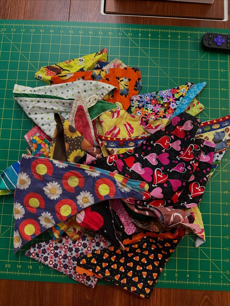 After she passed, I gathered up all her dog scarves I made throughout her life, and I cut them up into scraps to make a wall quilt in our memory of her.